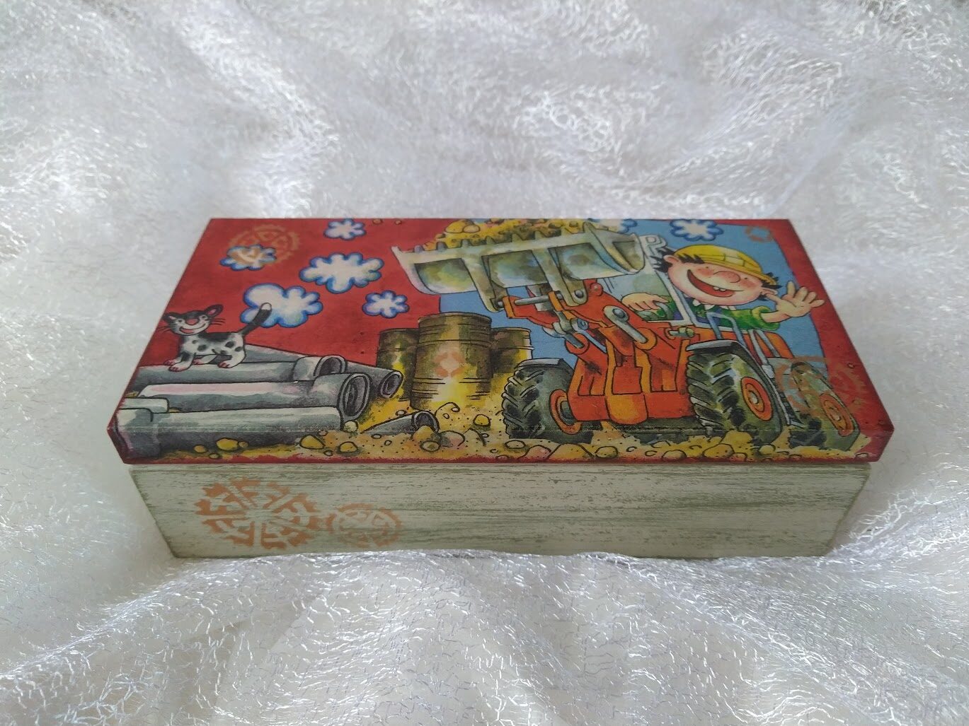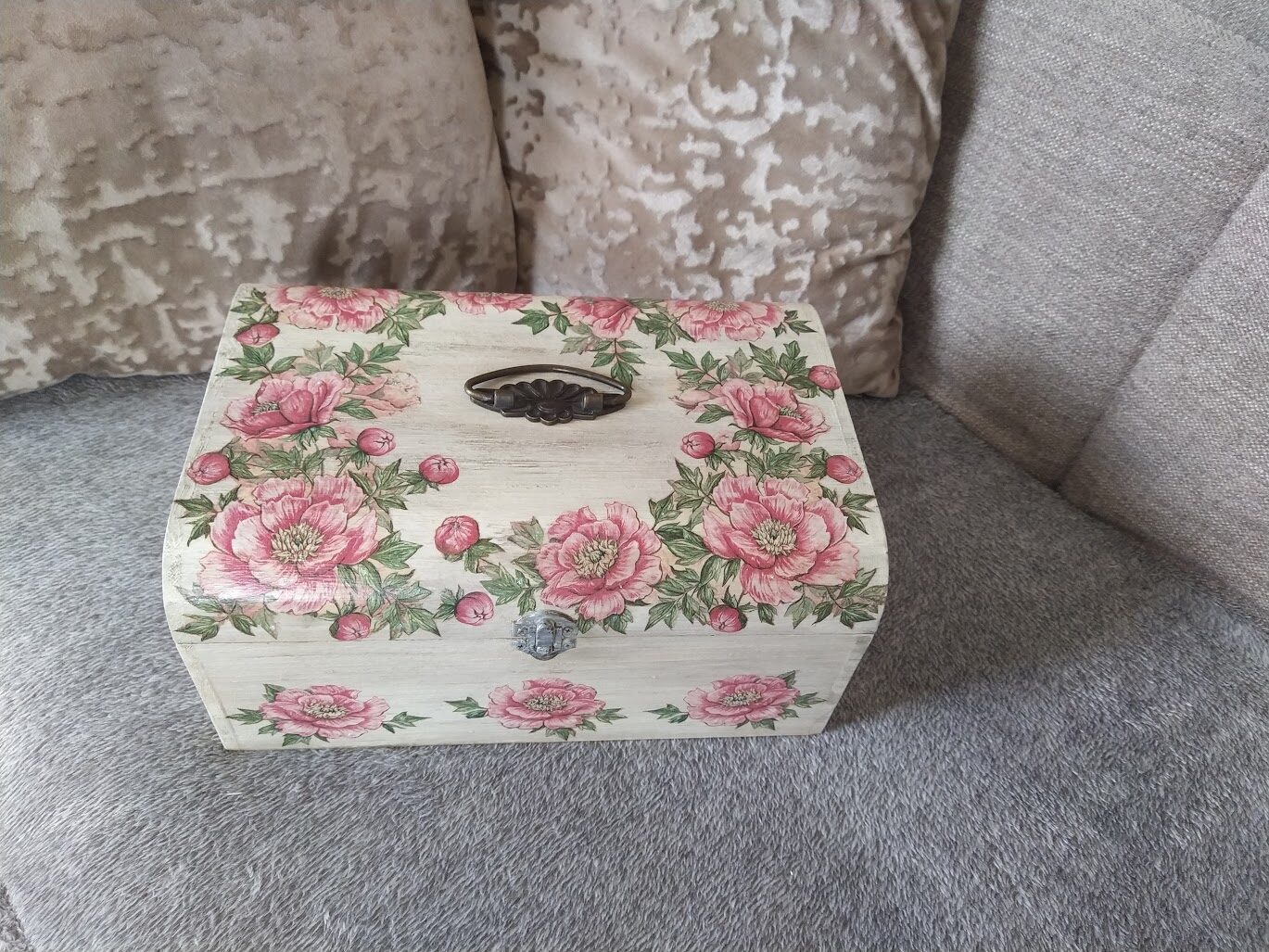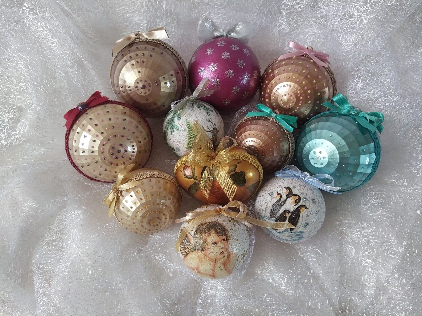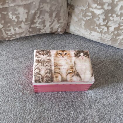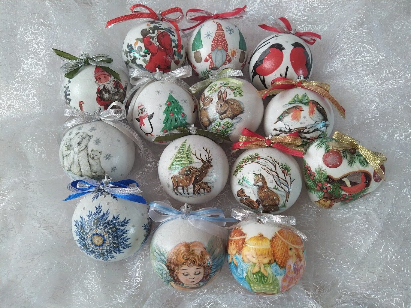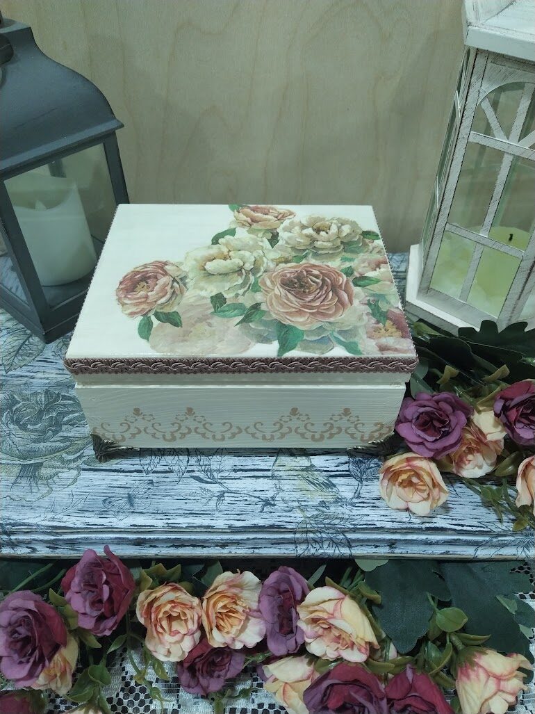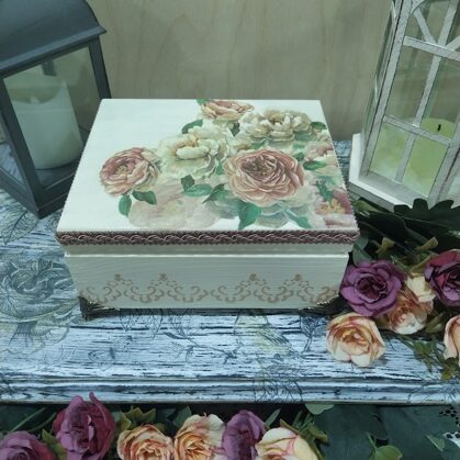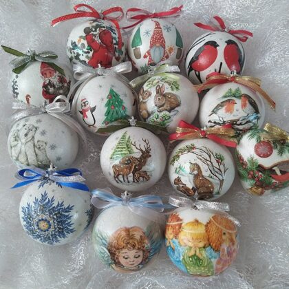 Kādas? Dekupāžas tehnikā dekorētas koka kārbas, paplātes, egļu bumbas, eglīšu rotājumi, svečturi, sveces, paliktņi, atslēgu piekariņi un vēl daudz kas cits. Vasaras periodā patīk dekupēt lejkannas. Darbus var apskatīt sadaļā ,,Rokdarbi bildēs'' - Senākie darbi, Ziemassvētki 2020, Ziemssvētki 2021, Tapis 2022 gadā.